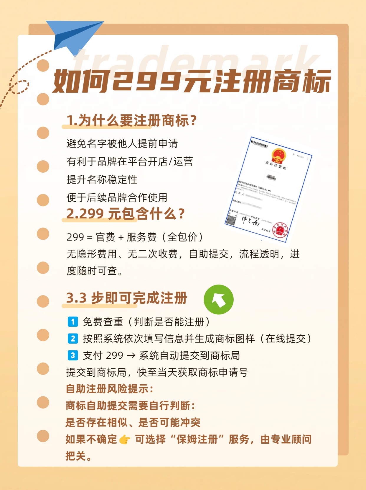 299=官费+服务费(全包价)无隐形费用、无二次收费,自助提交,流程透明,进度随时可查。
