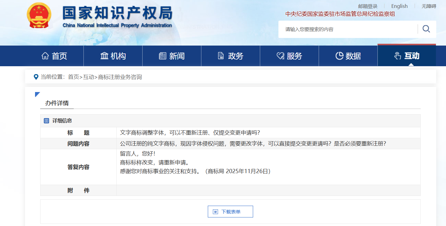 注册的是纯文字商标,但后来发现原字体存在版权风险,想换个字体,这种情况能不能只提交变更?