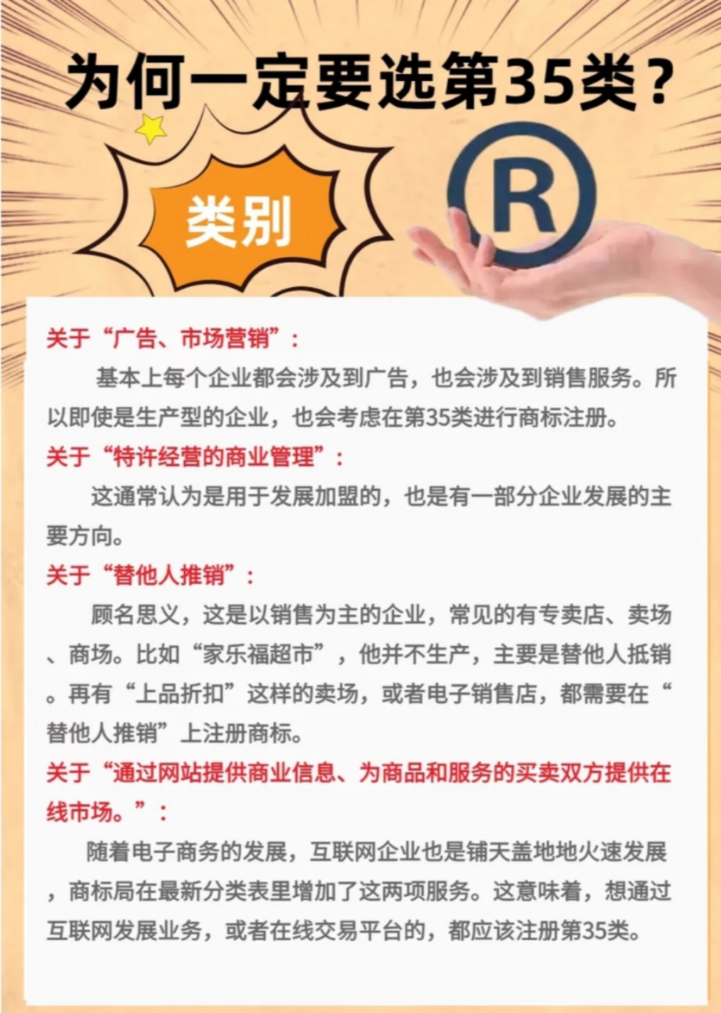 其实原因很简单,因为第35类和做生意、卖产品、推广品牌关系非常大。